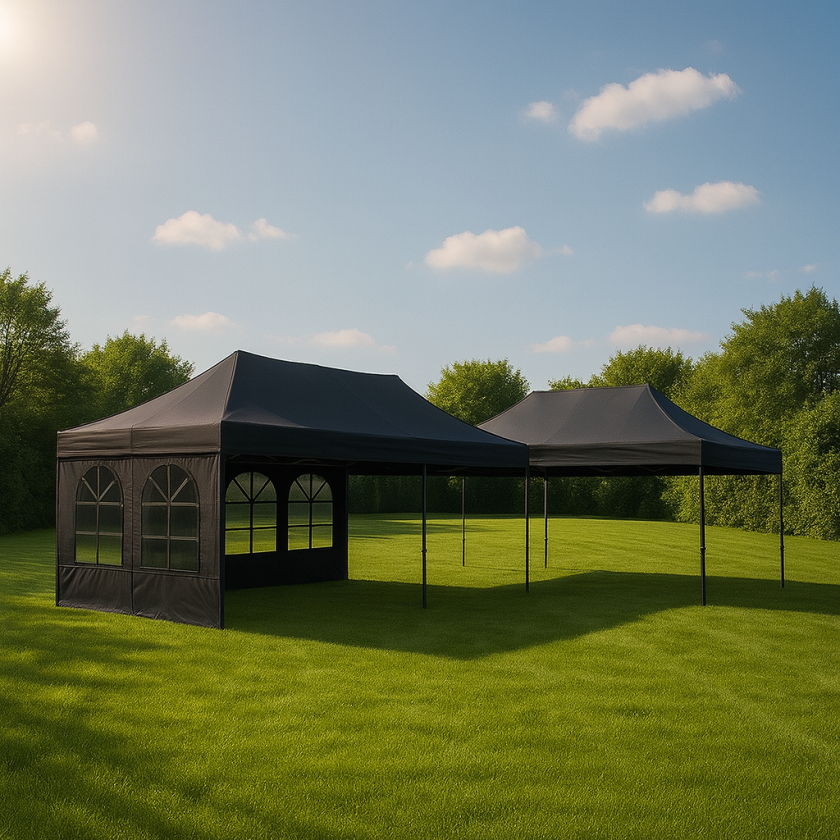 Mit unserem 3x6 m Faltpavillon bist du für jede Feier bestens vorbereitet: